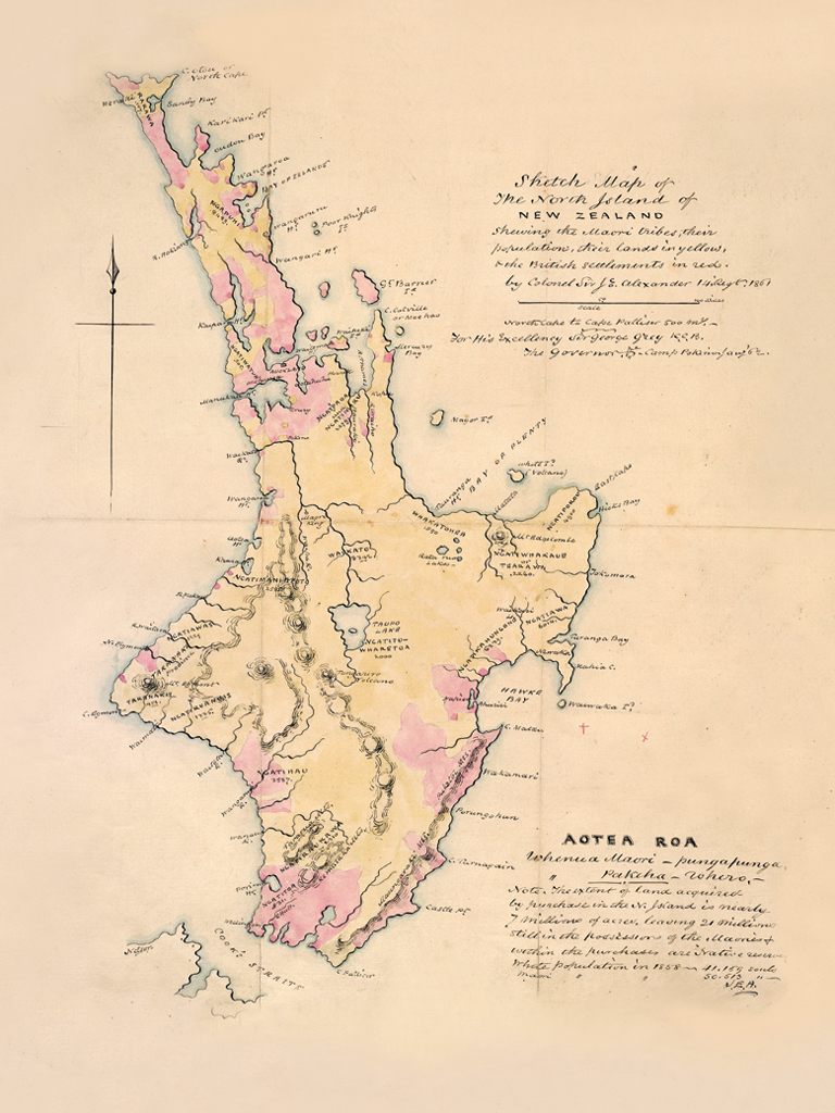 He mahere whenua e whākaatu ana i ngā rohe ā-iwi me ngā whenua Māori i te Ika a Māui, 1861. Kua oti ngā whenua Māori te tautohu ki te kōwhai, he whero ngā kāinga o te hunga mai Peretānia.. Ko te nuinga o ngā whenua kei ngā ringa Māori tonu.